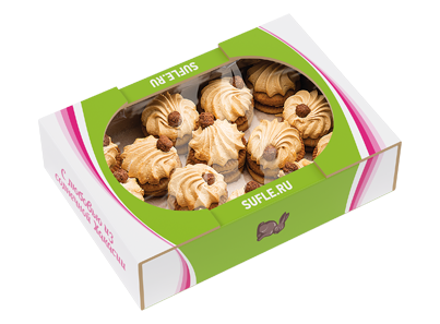 Сахарное печенье с начинкой из сливочного суфле и вареного сгущенного молока, украшенное хрустящим шоколадным шариком