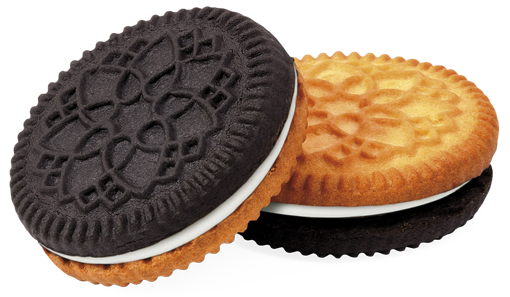 Двухцветное печенье-сэндвич "Аморе Мио" с ароматом шоколадного фондю и ванильно сливочной начинкой